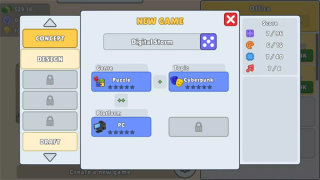 3、然后选择游戏类型,玩法,机制,平台和名称等来开发游戏;