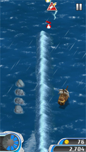 4、在前进的时候不断的撞击各种障碍物来破坏继续前行以及闪躲岩礁避免船损毁。
