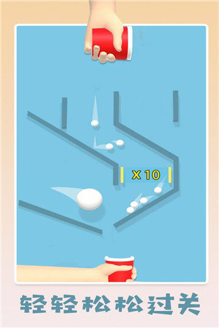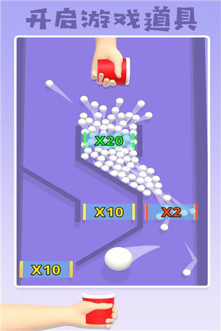 2、将从上方掉落的小球全部装进杯子里;