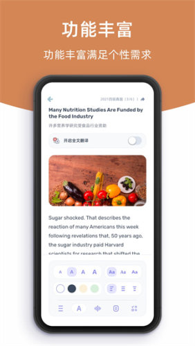 1、拥有生词解释以及文章翻译功能,让用户可以更好地理解文章里的内容;
