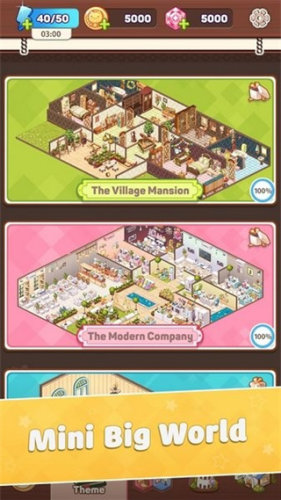 《我的袖珍世界》是一款模拟经营建造房屋装饰设计类手游,需要在极具写实且精致地场景中打造出理想中的家园,主要核心玩法是通过设计和装饰室内空间来体验到极致地创造乐趣,并且还需要根据每个不同关卡中的任务指示完成各种操作来把各种不同类型的方块组合在一起来创造出独一无二地专属独特世界。