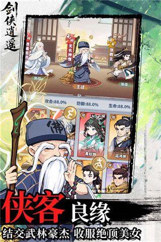 4、与各个知名豪侠结缘培养,形成特殊助战,降低主线难度获得战斗协助。