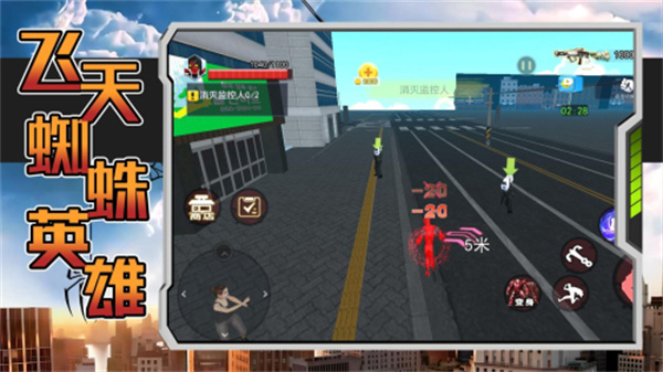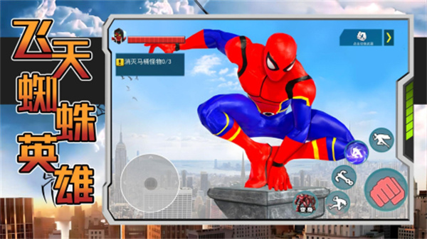 《飞天蜘蛛英雄》是一款动作冒险游戏,游戏引用了知名英雄蜘蛛侠的元素让玩家都着迷于此,玩家将化身为蜘蛛侠在辽阔的城市当中保卫市民不被外来入侵者袭击,观察城市的异样并且发现各种罪犯将其打击,利用各种能力与操作协同城市警方制服可恶的罪犯。