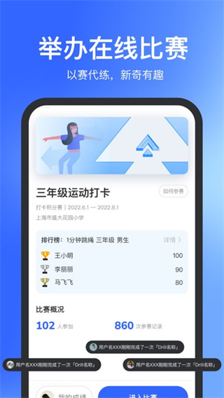 天天跳绳手机版下载376M0人在玩《天天跳绳》是一款记录跳绳训练的APP。它提供了无绳训练以及跟着训练指导,用户无需使用跳绳即可进行专业的锻炼。提供了多样化的跳绳模式,每个模式都有不同的锻炼体验,不仅可以使身体健康,还