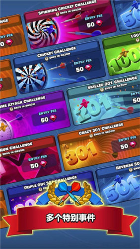 6、强化系统丰富:通过找到新道具一直不断地提升玩家自己的飞镖性能;