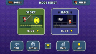 《飞钩米奇》是一款像素风格地2D横向卷轴动作手游,需要通过奔跑,跳跃,滑铲和钩子等动作来闯过各种关卡,并收集金币和黄金小短裤等道具,包含了6个大独特世界地36个关卡以及各式各样地外观道具,并且还提供了故事模式和挑战模式挑战,同时也拥有各种独特地外观和装饰提供解锁并穿戴。