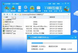1188压缩王是新一代的压缩软件,永久免费。1188压缩相比传统压缩软件更快更轻巧,支持解压主流的rar、zip、7z、iso等多种压缩文件。1188压缩王大幅简化了传统软件的繁琐操作,拥有全新的简介界面。1188压缩王的主要特点是智能,安全,快捷,免费。