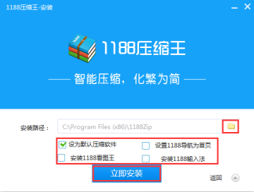 打开1188压缩王,选中一个或多个文件后,点击软件主界面功能栏的【添加】图标,并在新弹出的窗口中设置好压缩选项后,点击【立即压缩】即可对文件进行压缩。