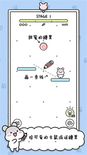 3、一关里面只限可以使用三次绘画的机会,让小仓鼠成功得到糖果就代表成功闯关了;