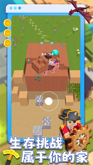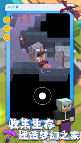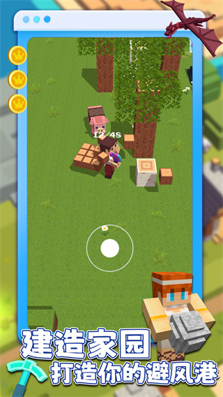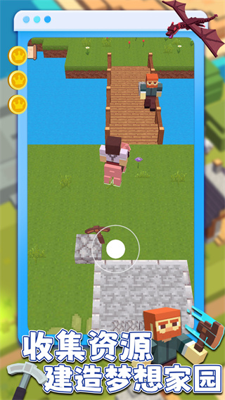 1、进入游戏后你会操控一个小方块人四处走动,边探索边完成任务,还要想办法找到伙伴一起去对付来捣乱的恶龙。