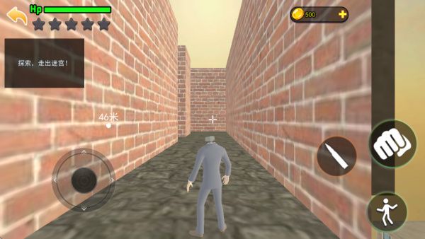 2、滑动屏幕查看周围环境,留意提示箭头,沿着指引寻找迷宫出口。