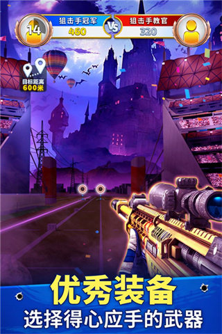 《狙击手冠军》是一款十分好玩的飞行射击类型游戏,玩家将扮演一名超强的狙击手需要在关卡中不断的完成各式各样高难度的任务,非常考验玩家的反应能力因为有时候可能会打歪,这时候就需要立马快速的调整回来将敌人击杀不要让他成功逃跑。