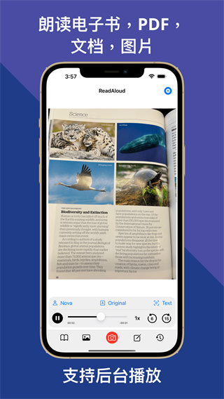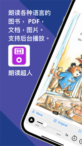 朗读超人(BookPod)是一款文本转语音的朗读软件,复读软件,可将任何文本、书籍、杂志、PDF、图像、照片和网页转换为有声读物和有声图书供您朗读收听。在旅游和参观博物馆时,还可以充当你的讲解器,导览器,声音导游。有AI人工智能技术加持,让其成为一名优秀的读者和朗读超人朗读神器,达到了播音主持级别。 它可以扫描图书、翻译和阅读任何语言。这款朗读助手可以把朗读配音做到类似人声,其声音比其它阅读器更流畅、更接近人类的声音。 通过阅读器阅读小说,您可以在厨房做饭时听书,孩子们可以扫描任何故事书并独立聆听。 对于外语语言学习者来说,您可以使用复读机功能练习听力,在母语和第二语言之间灵活切换。