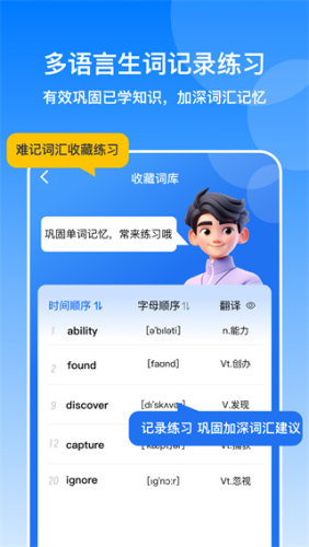 词库随心学:拥有丰富的词汇库,涵盖各种主题和场景,并通过多种学习模式进行记忆和巩固。