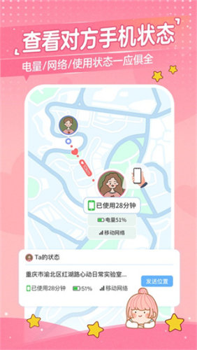 2、内置了实时定位的功能,随时随地都掌握对方的位置;