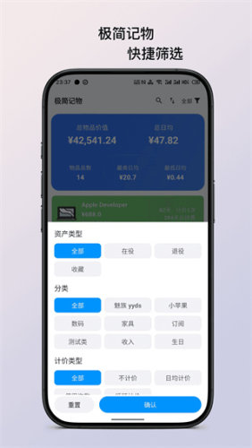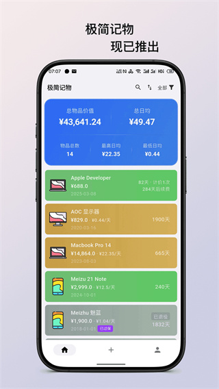 《极简记物》是一款实用的资产管理工具APP,用户可以快速地记录各种物品的信息,还可以设置个性化的图标颜色来轻松记录,让用户清楚地掌握自己已拥有的物品,避免自己忘记。