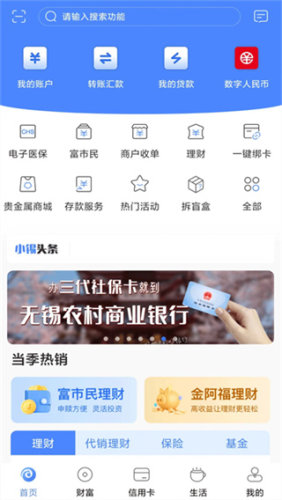 1、首页:便捷操作的常用功能;从小锡头条可以获得第一手的优惠资讯;特色理财,快速投资让理财变得的更加简单。