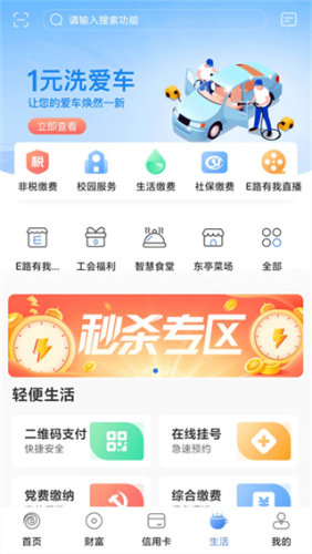 4、生活:提供生活缴费、社保缴费、话费充值等各类便民服务。
