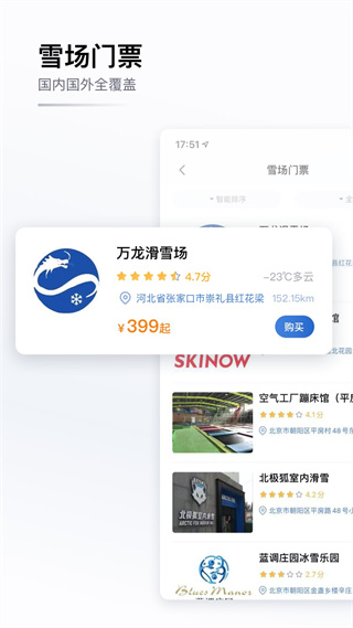 在线购买实惠雪票,尽享线下滑雪活动,掌握权威雪场天气