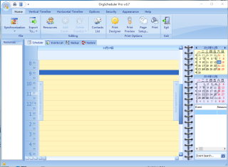 OrgScheduler Pro 一款高灵活性的事务管理软件.可以用于个人、办公或商务领域.它采用与Microsoft Outlook类似的界面,可以将日程安排输出为Outlook/Text/Html/Xml/Excel 等格式。