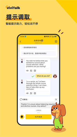 viviTalk结合创新的AI场景对话技术,为用户提供多样化、沉浸式的口语练习情境,让学习像参与真实交流一样自然有趣。无论是旅行、商务,还是日常表达提升,viviTalk 都提供系统化训练工具,包括地图式场景课程、实时对话反馈、智能纠错与学习报告,帮助用户高效练习口语。
