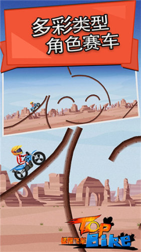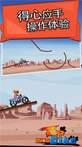 1、主要核心玩法是通过特技竞速来操控摩托车以在精心设计地赛道上快速前进并到达终点;