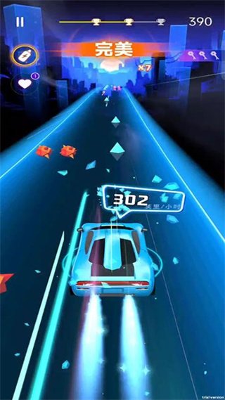 3、跟着屏幕上的节奏提示漂移或加速,把握好每一个音符点。