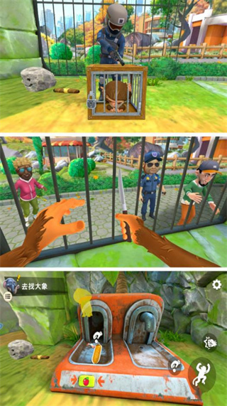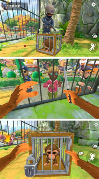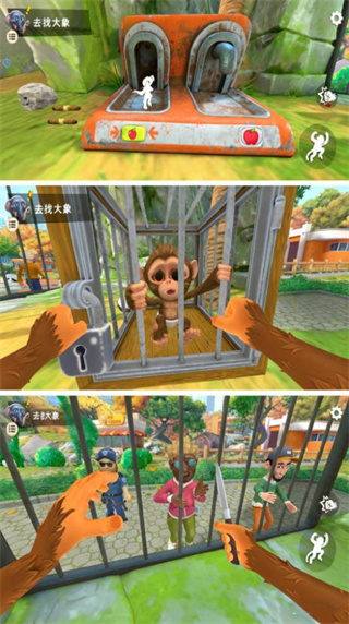 1、玩家将化身为一只猴子,用它的视角去发现周围的世界,和环境互动,体验不一样的动物园生活;