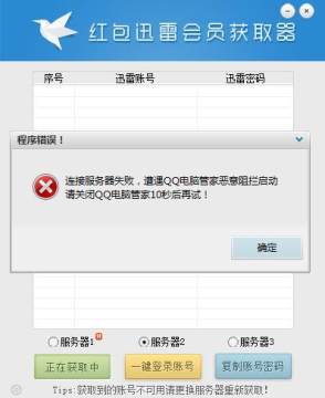 红包迅雷会员获取器是一款绿色免费的迅雷vip会员获取软件,小编亲测非常好用,软件界面简洁大方,操作便捷,首先选取服务器,然后点击一键获取迅雷会员账号即可。此软件每天都为用户及时更新最新的迅雷会员vip账号,并且它还支持防踢功能以及一键登录功能,让你能够稳定使用一整天都不会被顶号。