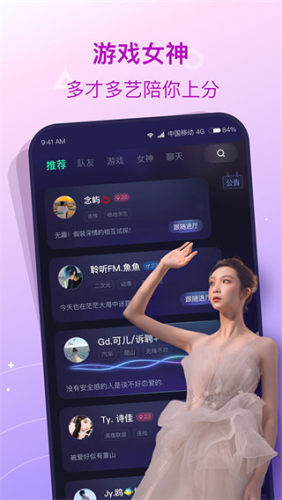 【游戏陪玩,组队上分】 24小时在线,随时随地找到对比心仪队友,带你一起享受多人开黑的乐趣 热门游戏全支持,英雄联盟、王者荣耀、绝地求生、和平精英等等,根据游戏类型和风格,帮你极速约会的小姐姐声音好听、技术超强,超会聊天的理想大神。