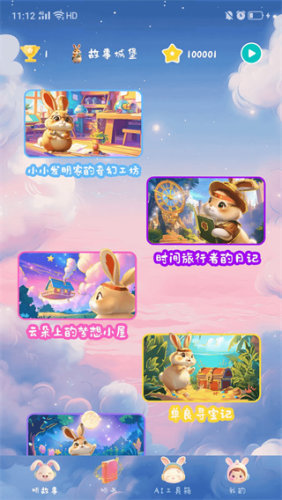 2、收录海量精彩的故事让孩子随心听,还有小兔单良IP角色陪伴孩子一起聆听故事;