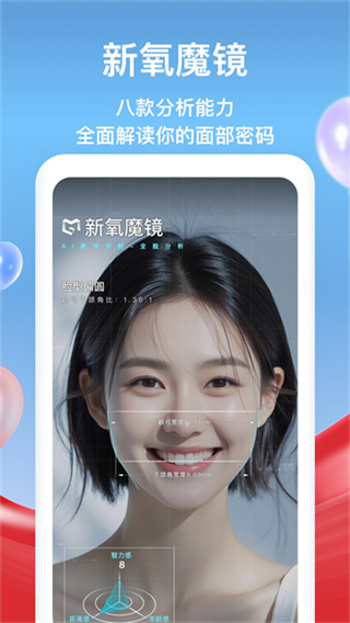 【智能测脸】:新氧魔镜自主研发AI美学诊断功能,一键测脸,精准定义你是哪种美。