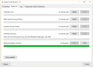 Spybot Anti-Beacon 是它的目的是阻止和制止各种跟踪(遥测)存在的问题在Windows 10,它已经被修改,以阻止类似的追踪功能,在Windows 7中,Windows 8和Windows 8.1操作系统的一个独立的工具。