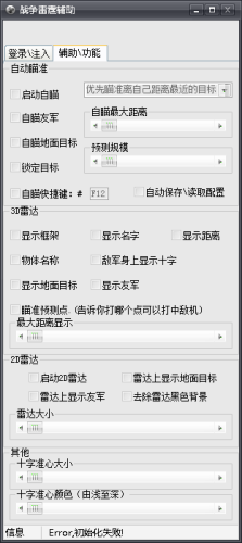 战争雷霆辅助帮助玩家节省时间和精力,做到事事快人一步,主要有自瞄友军,显示友军,显示框架,自瞄地面目标,显示名字,自瞄风格,自瞄最大距离,支持2D、3D雷达设置等等功能
