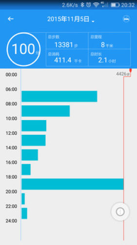 2、当处于运动模式时,仪器会自动记录下24小时佩戴者的活动情况,以步数、公里、卡路里为单位进行数据收集。佩戴者可App或传感器显示屏上看见自己的相关运动数据。