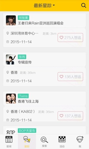 每天为粉丝提供过百条明星星踪,让粉丝随时随地了解偶像动态