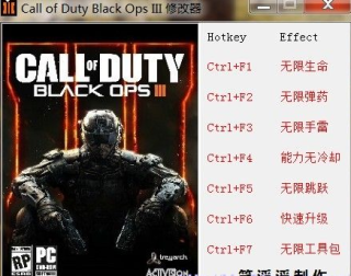 Call of Duty Black Ops III修改器提供了无限生命、无限弹药、无限手雷、能力无冷却、无限跳跃、快速升级、无限工具包等功能,可任意版本游戏使用。