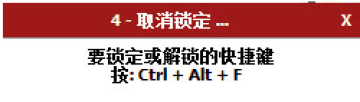 锁定后会弹出一个红色的框,提示要解锁的快捷键