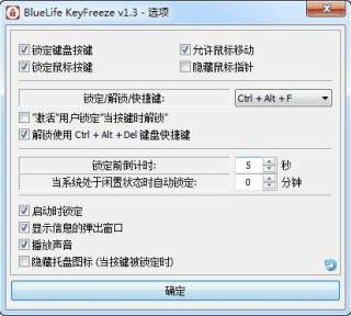 BlueLife KeyFreeze是一款绿色小巧的键盘鼠标锁定工具,该软件操作简单,锁定后默认使用Ctrl+Alt+F解锁。你也可以单独锁定键盘或鼠标按键。当你长时间离开电脑,又不希望别人动你电脑的时候,你可以来试试这款KeyFreeze,它使用简单,方便好用,可以保护你的电脑不被别人使用。