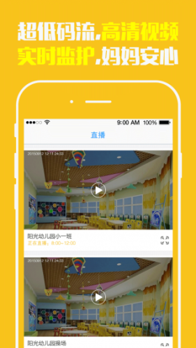 全方位向家长开放教学课堂和室外活动区的远程视频, 为校园安全和透明化管理提供了核心技术支持。 家长可随时登陆手机端观看宝宝在校实时视频, 让上学不再成为阻挡家长关注宝宝的壁垒。 透明办学,看得见,更放心!