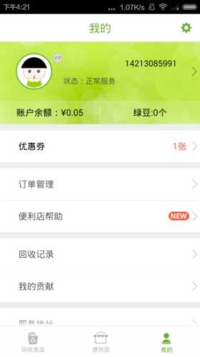 建立用户废品回收的个人账户,有效记录环保贡献与资金余额