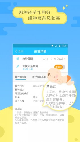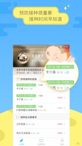 1、【预防接种提醒】智能提醒疫苗接种时间防漏种;