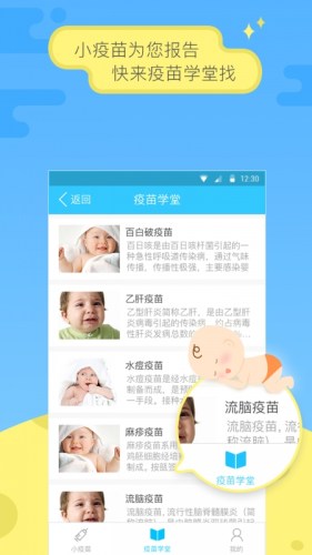 2、【疫苗学堂】疫苗知识轻松了解。轻松掌握每一种疫苗的接种前注意事项,接种后注意事项和常见不良反应,让您接种不再无助;