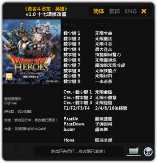 勇者斗恶龙英雄算是一款粉丝向的游戏,不单单是割草,BOSS打法类似怪物猎人,DQ的怪物也悉数登场,目前勇者斗恶龙英雄正式登录PC平台,本站带来针对游戏本体提供十七项修改功能的强大修改器下载,再厉害的史莱姆,也不在话下了。