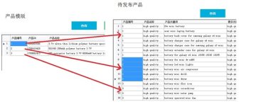 2、手工编辑【待发布产品】中的产品编号,与待发布的模板产品编号对应(如下图):