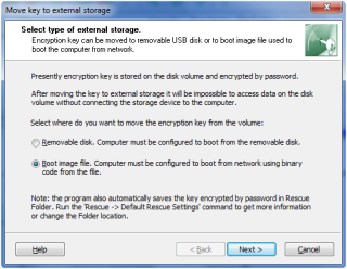 随着的BestCrypt卷加密版本3,加密密钥可以被移动到可移动存储。
