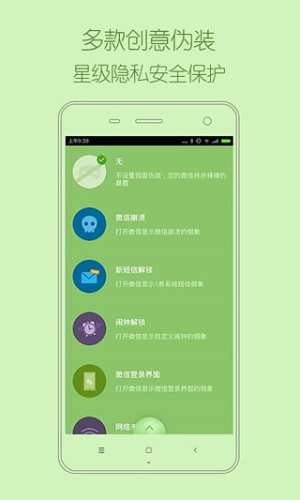伪锁是一款专门为微信设计的一款隐私保护工具。它用伪装的方式让对方不觉的是密码锁,可以将用户的透明信息伪装起来,已达到避免泄漏的尴尬效果。