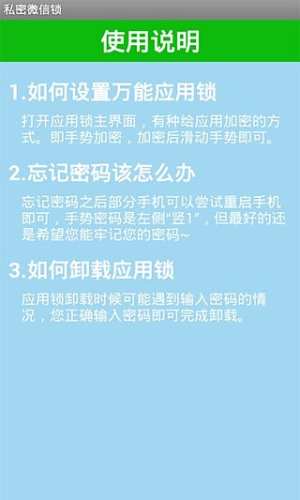 私密微信锁是一款免费应用,并且一用即会,操作简单。