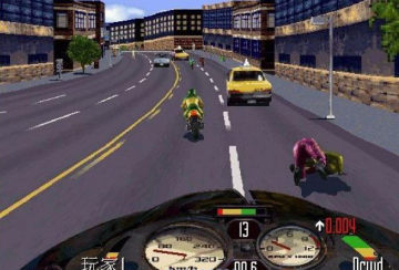 3、比赛进行期间,按 V 键可查看游戏版本,按 F10 为切换/显示/隐藏摩托车的仪表面板;小键盘的“+ -”键为改变游戏背景的贴图颜色。
