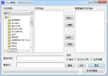 工作有时需要替换n多Word的文档中的某些东西,一个个手工替换很费事。这个小工具可以批量替换Word文字,可以提醒备份,简单小巧,绿色免费。